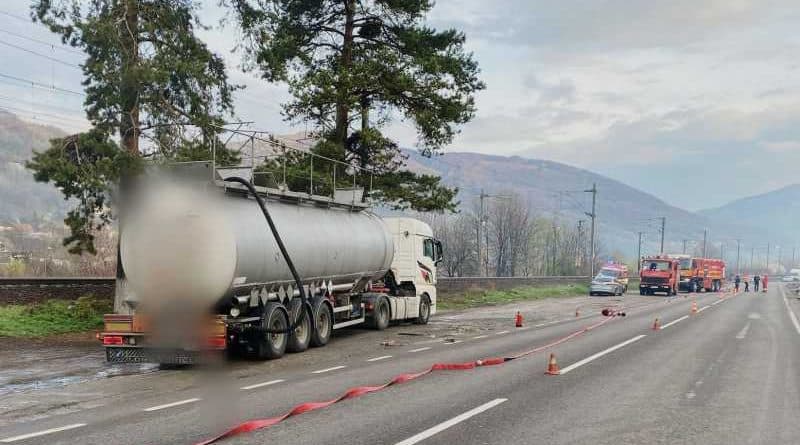 Scurgeri de acid sulfuric dintr-o cisternă aflată pe DN 1, la Comarnic; zona va fi evacuată